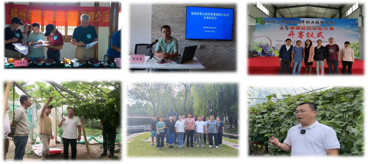 团队紧密结合生产,积极开展技术培训和示范推广。团队负责人谢兆森教授担任中国农学会葡萄分会理事、中国果品流通学会葡萄分会理事、江苏省葡萄协会理事、山东省科技专家库专家、江苏省非主要农作物品种认定委员会专家库专家、河北省“三三三人才”、江苏省科技副总、扬中市“江雁计划”产业领军人才、江苏省第十七批科技镇长团成员。每年培训果农1000余人次,与企业共建专家工作室1家,建立科技示范基地5处。