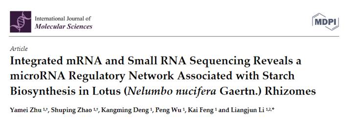 近日,我院水生蔬菜团队在国际著名期刊International Journal of Molecular Sciences发表了题为Integrated mRNA and Small RNA Sequencing Reveals a microRNA Regulatory Network Associated with Starch Biosynthesis in Lotus (Nelumbo Nucifera Gaertn.) Rhizomes的研究论文。该研究通过对莲藕节间转录组和Small RNA测序的联合组学分析,揭示了microRNA调控淀粉合成的复杂网络。