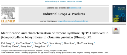 近日,我院李良俊教授课题组在Industrial Crops and Products(中科院一区,IF=6.449)上发表了题为“Identification and characterization of terpene synthase OjTPS1 involved in β-caryophyllene biosynthesis in Oenanthe javanica (Blume) DC.”的研究论文。
