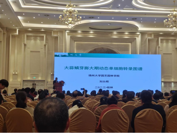 大会以深入学习贯彻党的二十大精神,增强稳产保供能力,满足美好生活需求为主题。来自全国30多个省、市、自治区的科研院所、大专院校和从事果树、蔬菜、西甜瓜和观赏园艺研究和相关产业的1500余专家和学者参加了会议。我院金飚、杨晓东和刘头明教授分别在观赏园艺专业组和蔬菜专业组做题为《银杏长寿机制》、《MSH1记忆系跨代遗传机制与育种利用》和《大蒜鳞芽膨大期动态单细胞转录图谱》的学术报告,向全国同行展示了各自的最新研究成果,获得了好评。