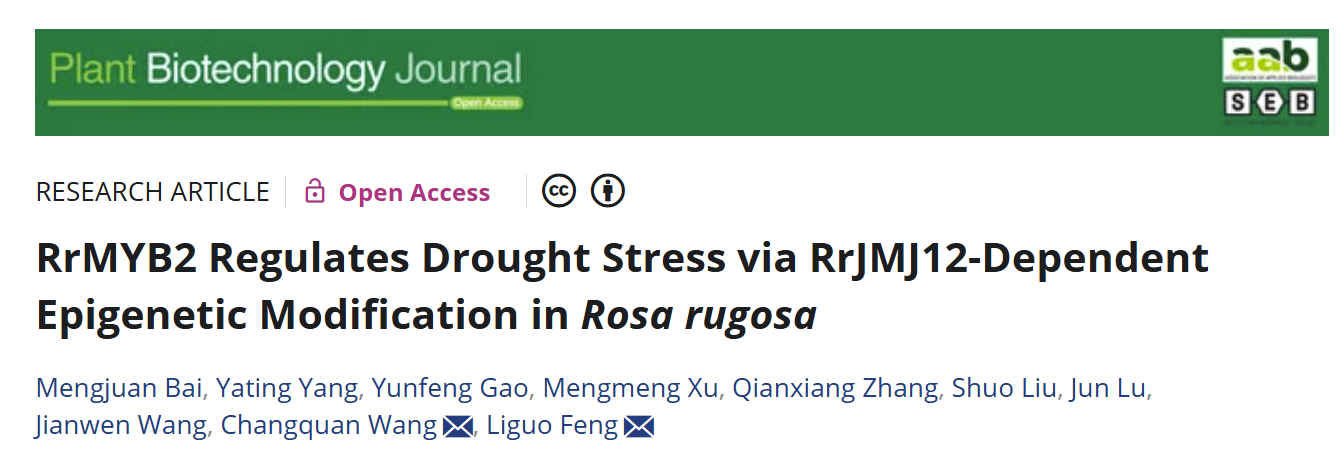 近日,我院冯立国教授课题组联合南京农业大学王长泉教授课题组在Plant Biotechnology Journal(中科院一区Top,最新影响因子10.5)在线发表了题为 “RrMYB2 Regulates Drought Stress via RrJMJ12-Dependent Epigenetic Modification in Rosa rugosa” 的研究论文。该论文解析了一个耐旱正调控因子RrMYB2通过依赖组蛋白去甲基化酶RrJMJ12,负调控ABA信号PP2Cs基因的分子调控网络。研究结果揭示了玫瑰转录因子联合表观修饰因子调控耐旱机制的新发现,为耐旱玫瑰育种提供了重要的理论依据。