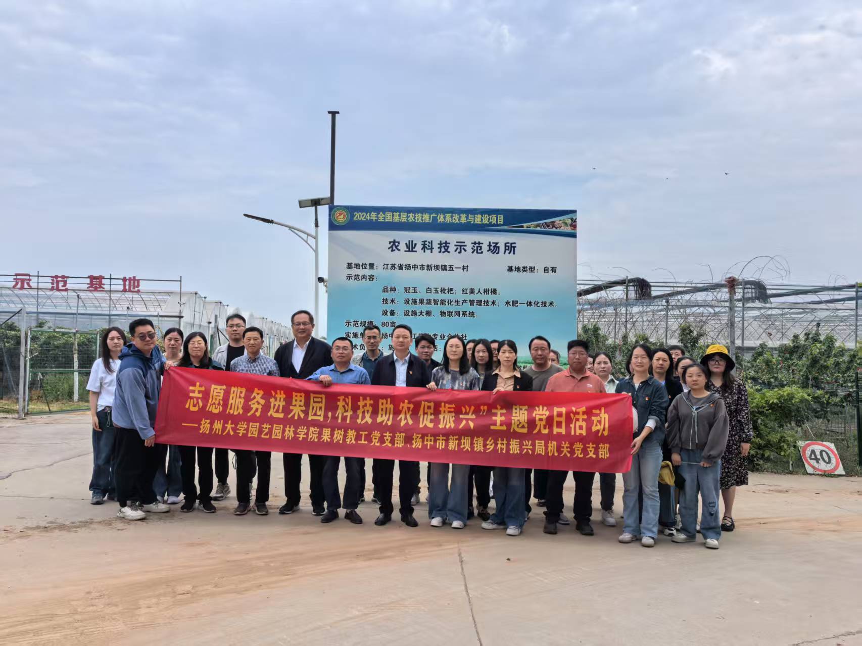 为深化党建引领,推动党建工作与乡村振兴工作深度融合,提升专业教师基层服务能力,促进产教融合发展,4月27日,我院果树教工党支部组织带领果树园艺系全体教师赴扬中新坝镇与该镇乡村振兴局机关党支部开展支部共建与联合党日活动。此次活动以“志愿服务进果园,科技助农促振兴”为主题,两个党支部将主题党日活动搬到乡村振兴一线,走进果园,开展产业调研与科技服务,促进支部间的交流合作。