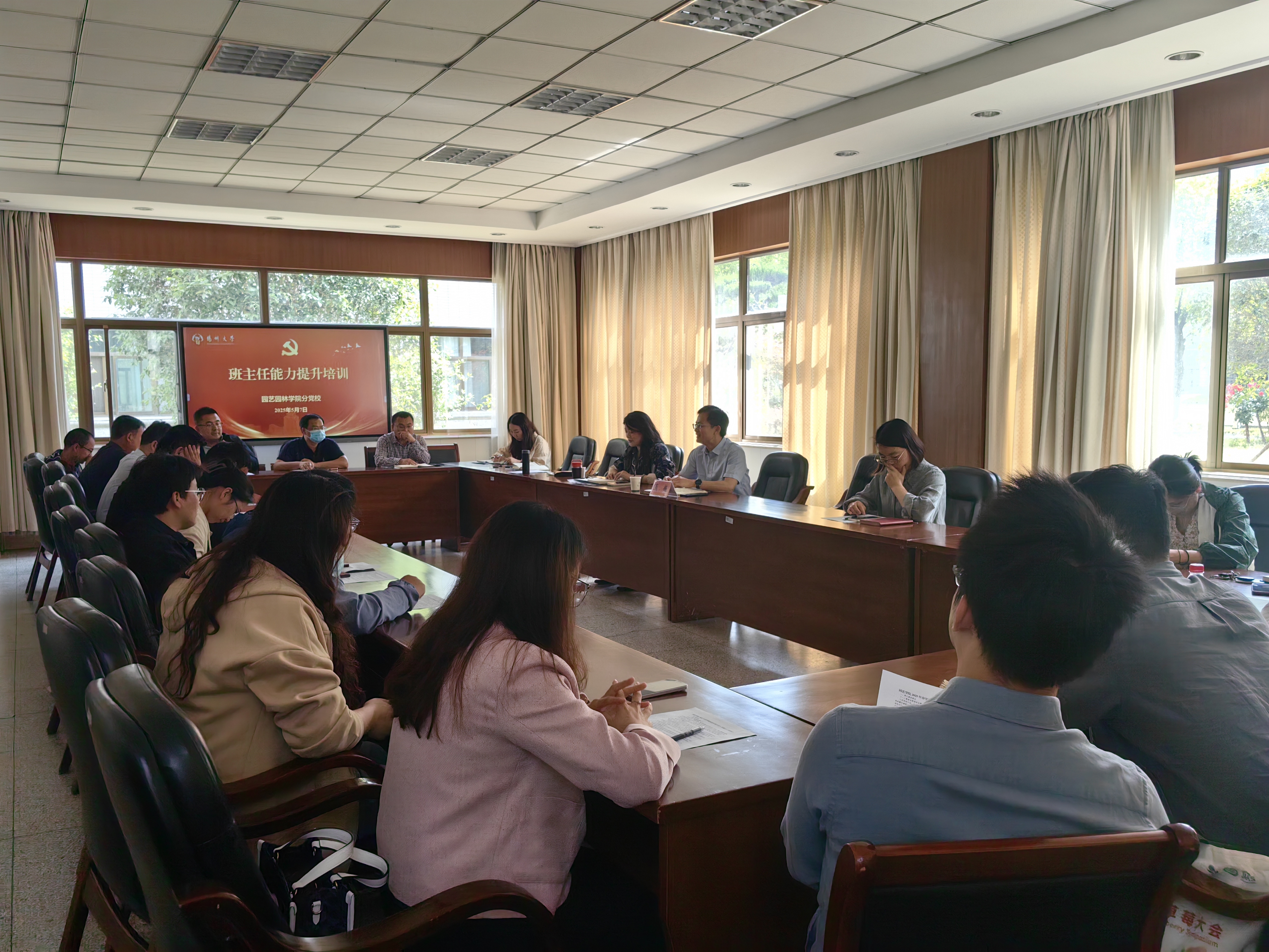 为深入贯彻落实党的二十大精神,扎实推进思想政治教育队伍建设,提升班主任思政育人能力和专业素养,5月7日下午,园艺园林学院分党校举办班主任思政教育能力提升班暨本科生班主任专题培训会。学生工作部(处)副部(处)长、学生党建指导中心主任周超受邀作专题讲座,院党委副书记刘芳玮主持,全体辅导员、班主任参加培训。