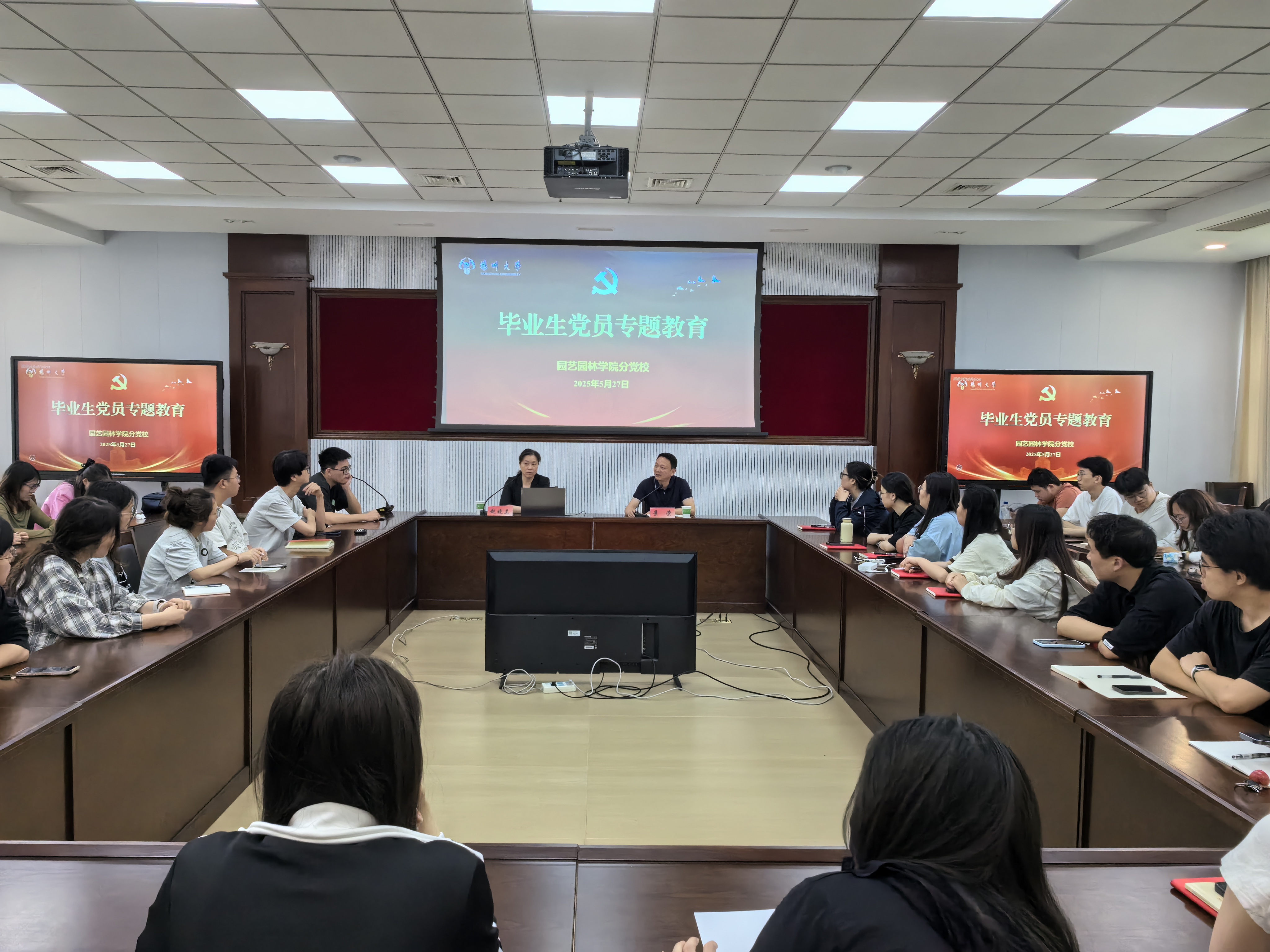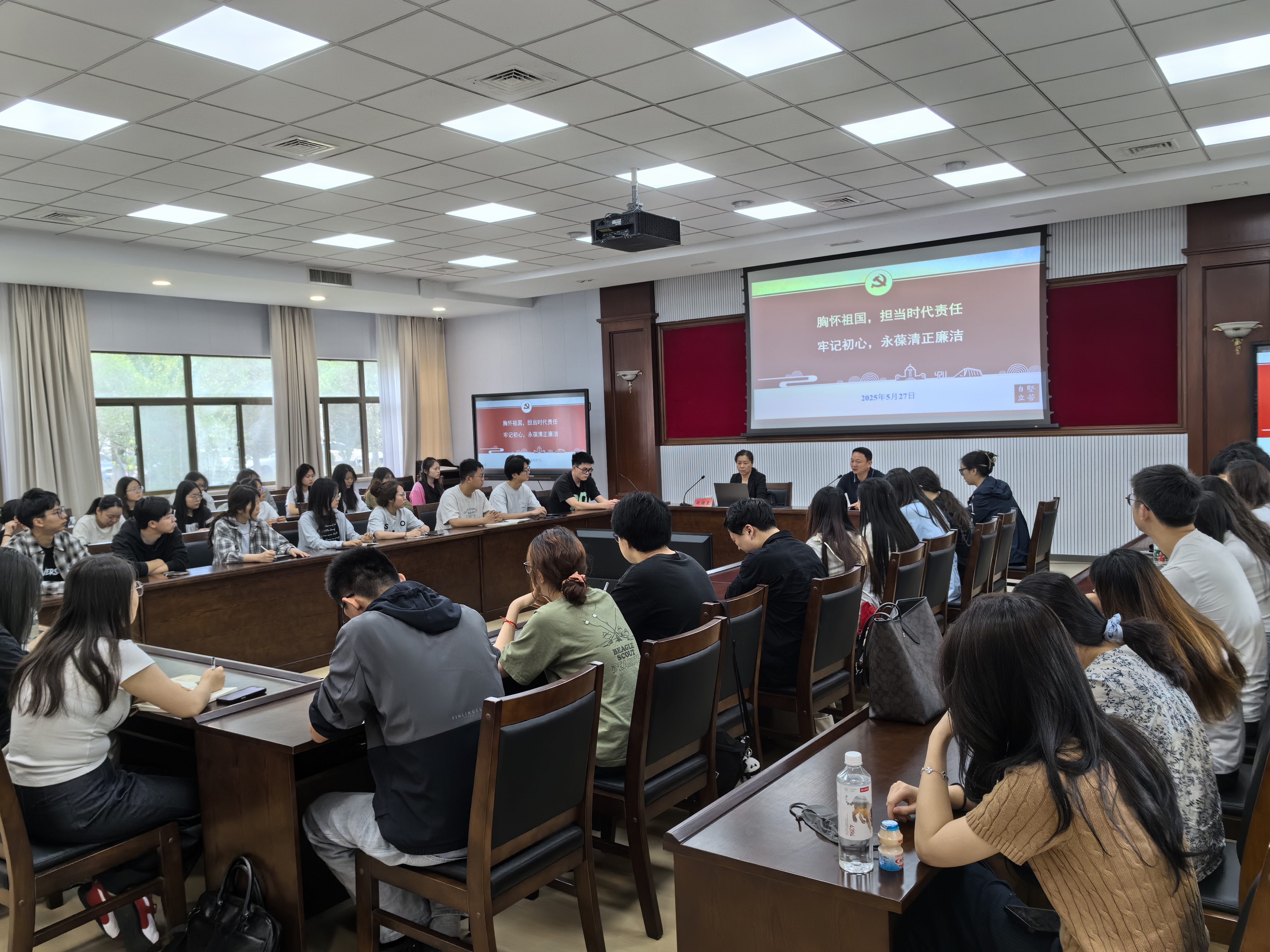 5月27日,学院开展2025届毕业生党员专题教育。校纪委副书记赵晓兰应邀作《胸怀祖国,担当时代责任;牢记初心,永葆清正廉洁》主题党课;学院党委书记景荣主持,全体毕业生党员参加。