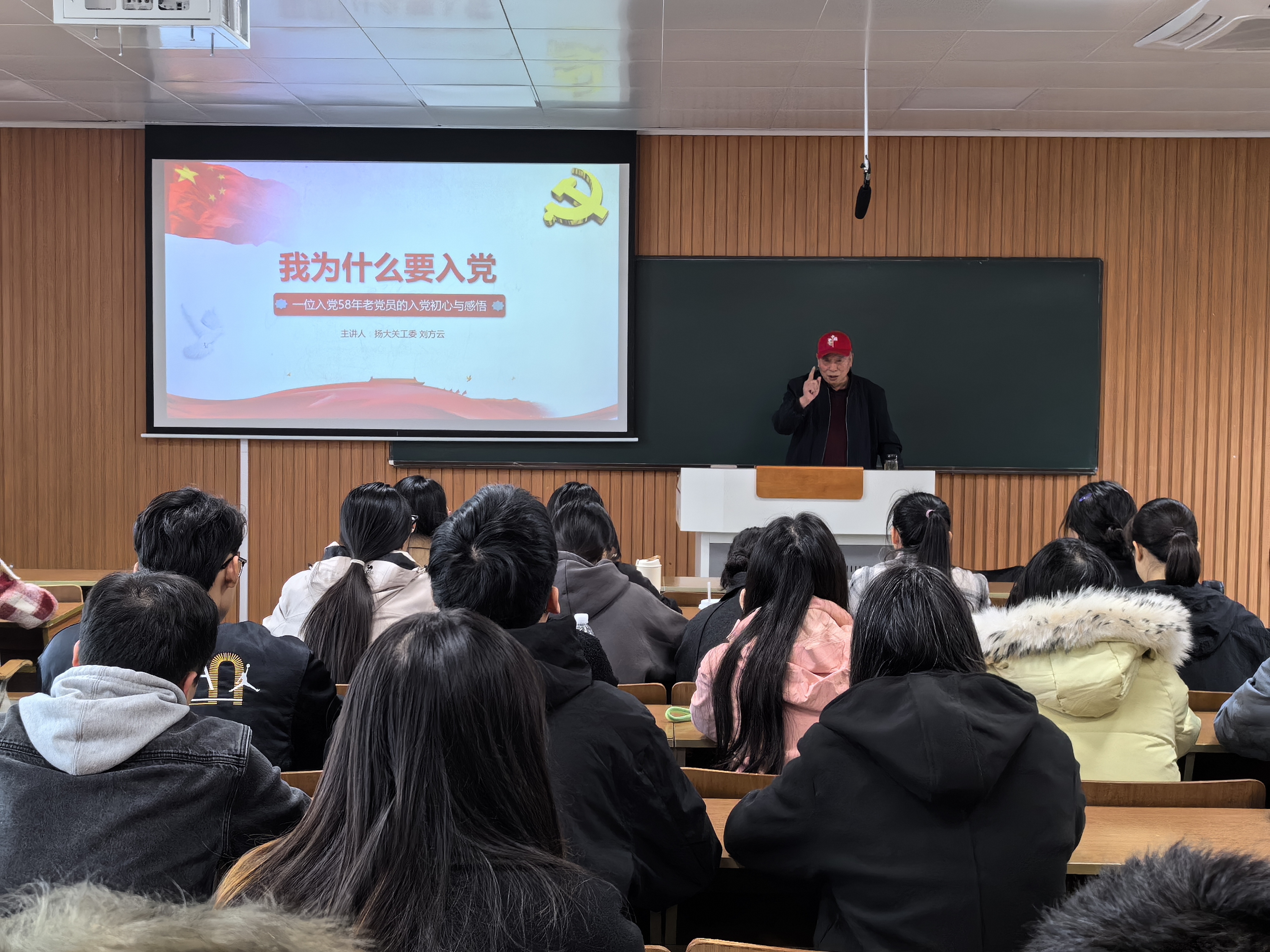 刘方云老师以《我为什么要入党-一位入党58年老党员的入党初心与感悟》为题,讲述一位老党员不忘入党初心,践行入党誓言,弘扬党的精神,传播党的理论的58年。刘爷爷要求同学们“要不忘初心,做党的人;要坚定信念,做有梦想的人;要拼搏创新,做敢担当的人;要提升修养,做品德高尚的人;要不懈学习,做有学问的人”。