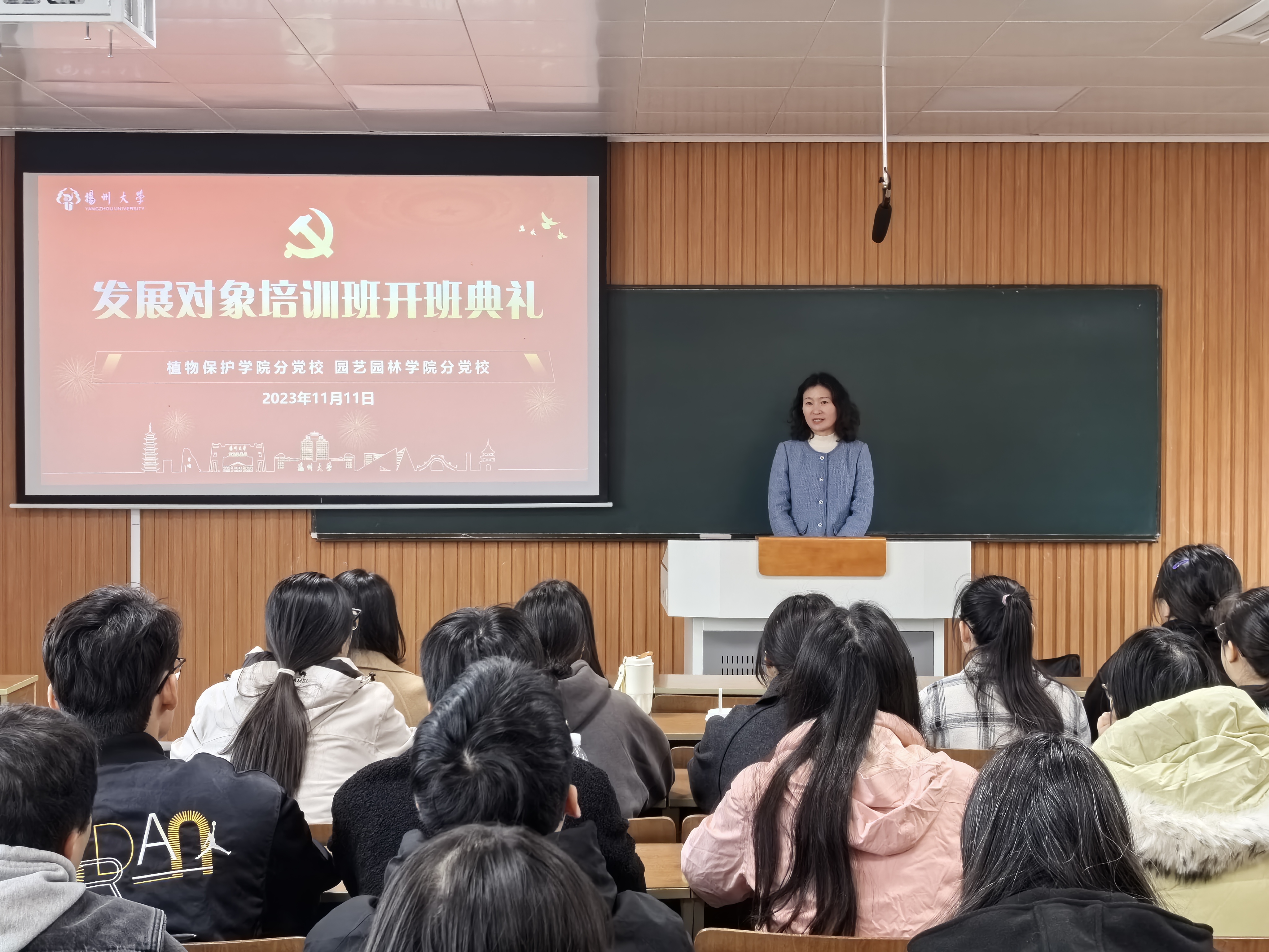 11月11日下午,植物保护学院分党校、园艺园林学院分党校发展对象培训班在文汇路校区23号楼616教室举办。校关工委理论宣讲团刘方云老师、校纪委副书记赵晓兰书记应邀为两院发展对象作专题报告,植物保护学院党委书记侯燕主持此次报告会。
