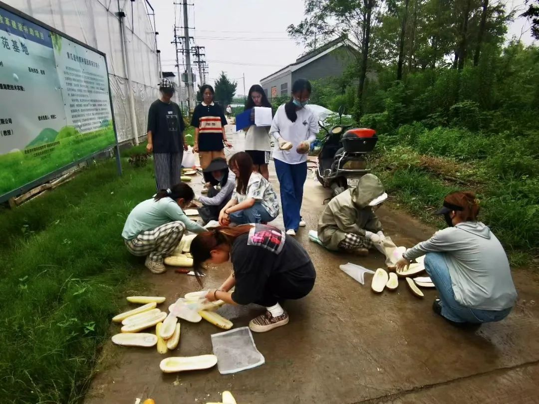 前往果园进行实地探访的想法诞生于团队成员们在学校的学习和实践。在学校里,成员们听说我院不仅拥有国家级黄瓜科技小院,最近还与果园合作建造了黄瓜种质基因库项目,便一直想去实地参观和学习瓜果蔬菜品种的培育。这一次有机会来到果园,成员们都十分激动。调研当天,恰逢黄瓜种质基因库采种,成员们一同协助完成了相关科研任务,参与到科研协作中来。