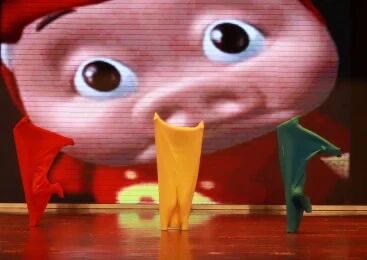 套上布袋的覆面舞者