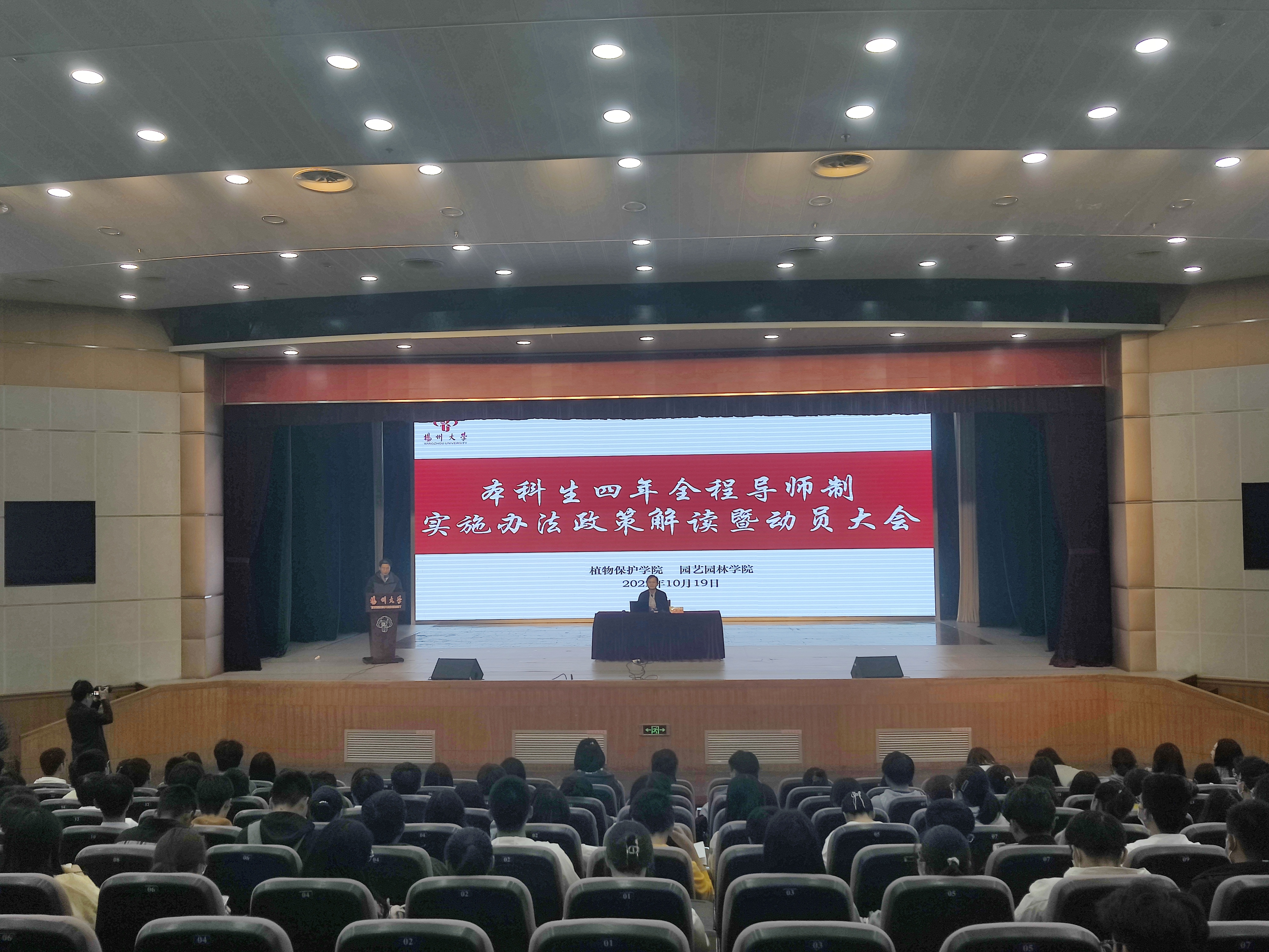 10月19日下午,植物保护学院、园艺园林学院在大学生活动中心三楼小剧场举行本科生四年全程导师制实施办法政策解读暨动员大会。本次会议由周超老师主讲,全体辅导员、2022级本科生新生参加。