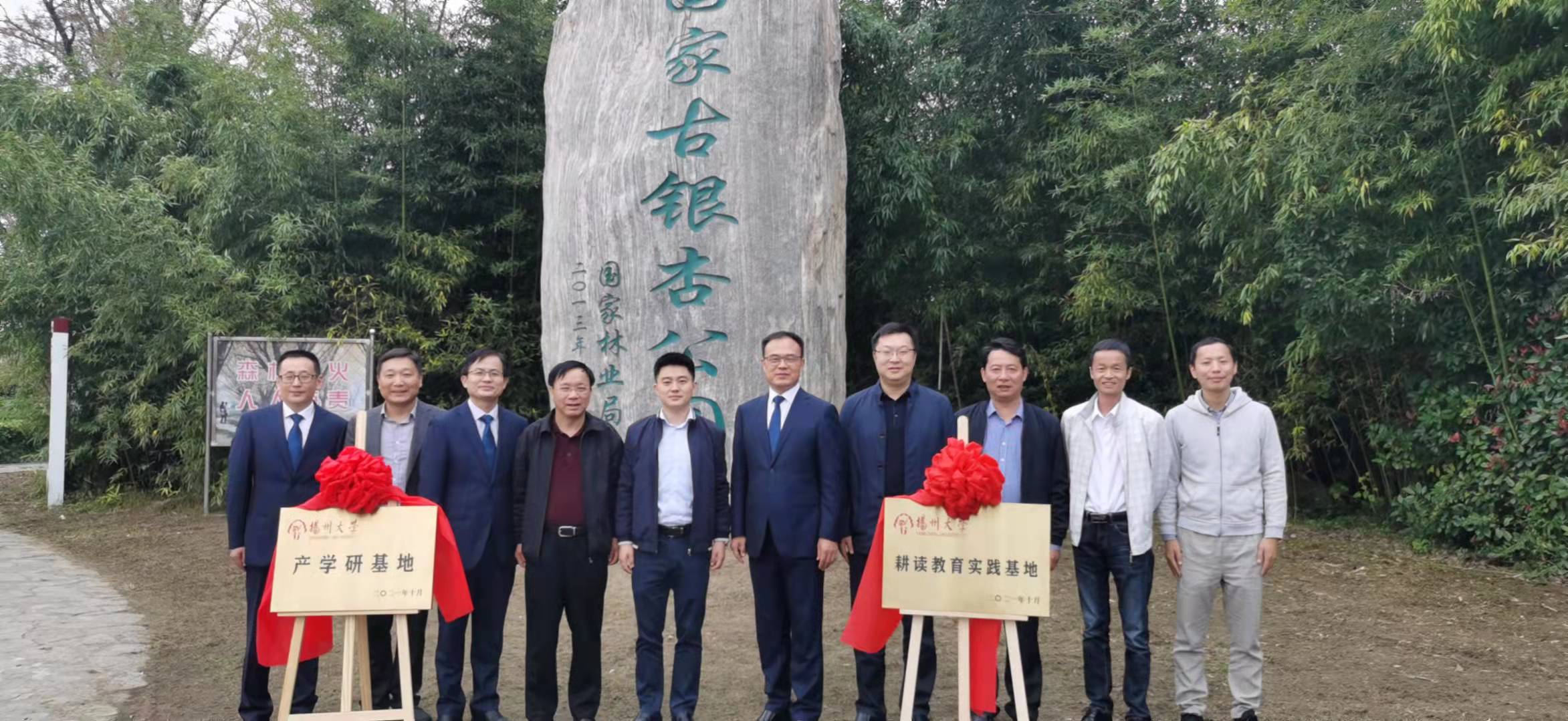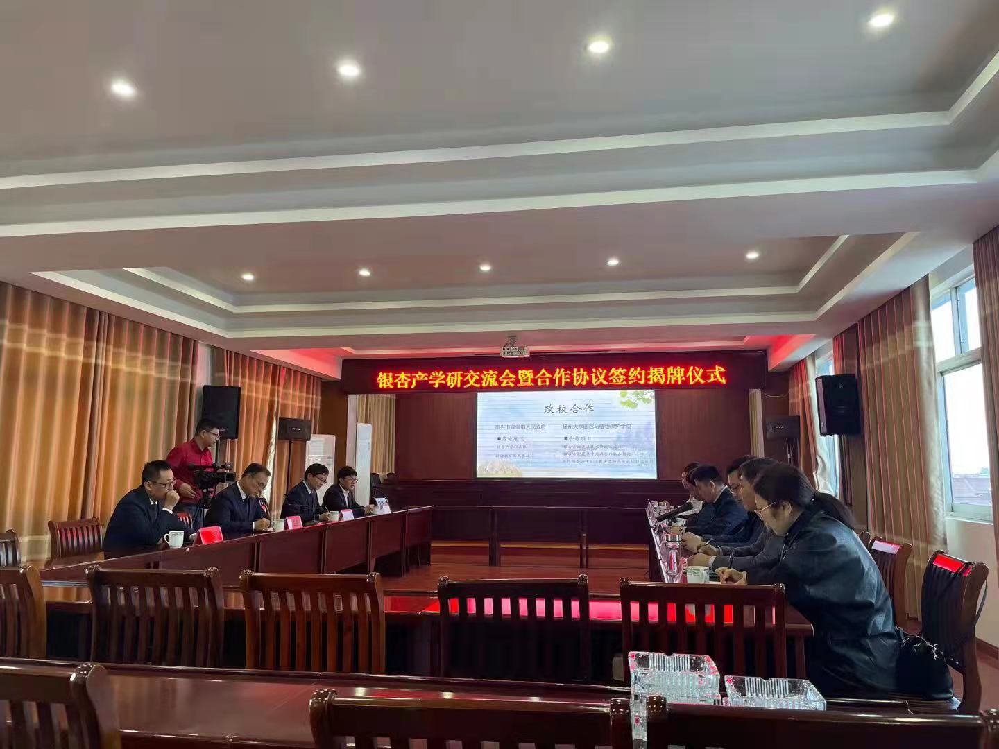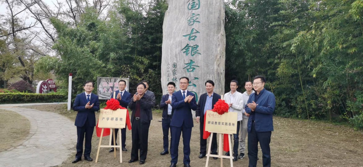 活动仪式上,龚可思市长在欢迎词中,简要介绍了泰兴市农村、农业发展现状,高度评价了此次活动的意义,提出了校地合作常态化、特色化的要求。李卫星书记介绍了学校和学院的情况,希望双方在新的合作基础上,务实工作,创造实绩,更好地服务好地方经济发展。肖波与周超、刘思安共同在合作协议上签字,李卫星、周超分别与龚可思、鲍家成,为“耕读教育实践基地”“银杏产学研合作基地”揭牌。