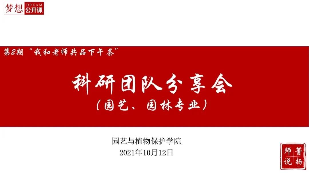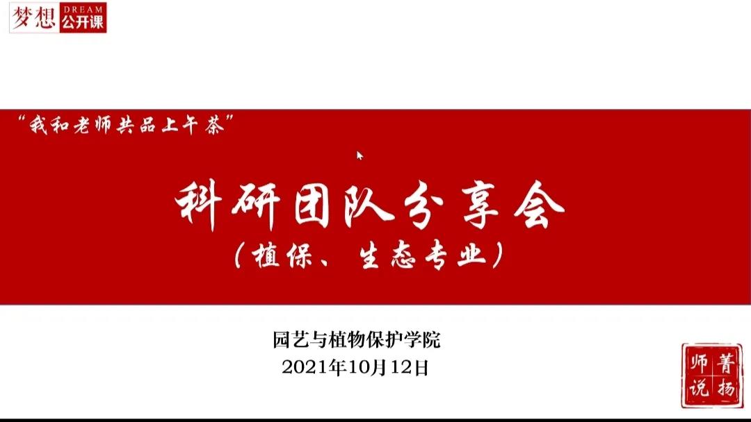10月12日上午与10月12日下午,我院举行了两场科研团队分享会,分别为植保、生态专场和园林、园艺专场。让21级新生感受我院浓厚的学术氛围。