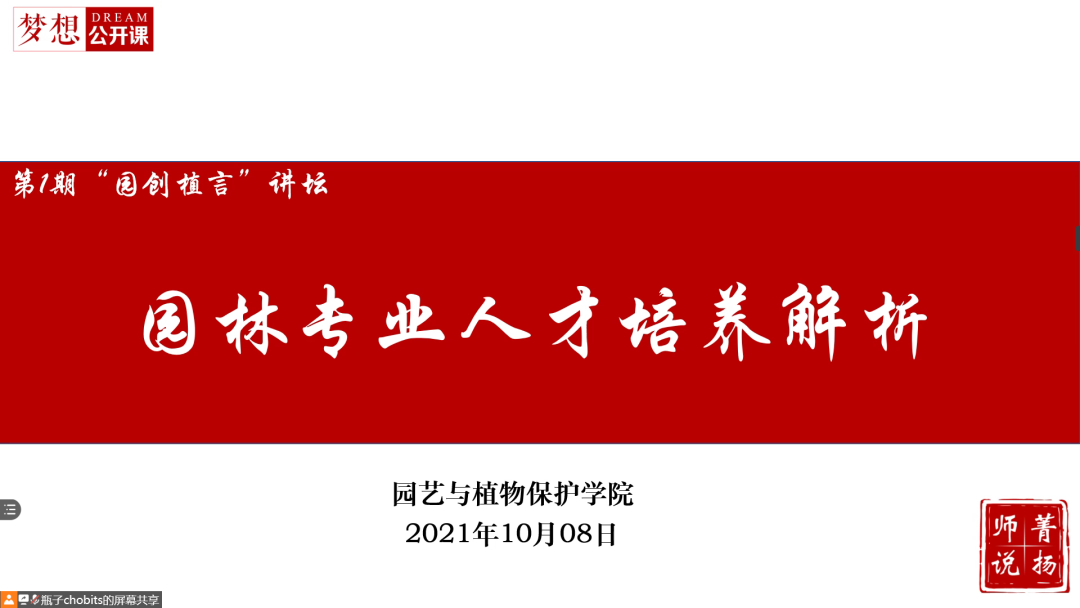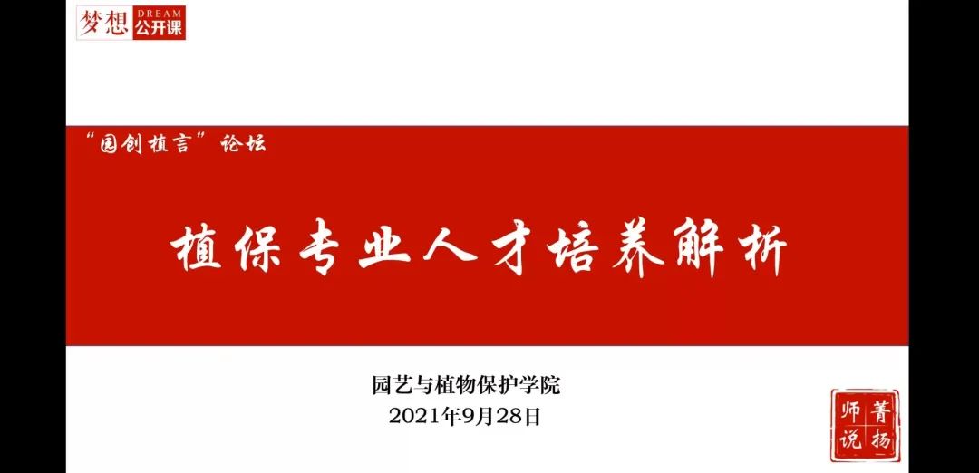 9月28日及10月8日,园艺与植物保护学院开展了线上“园创植言”讲坛——专业人才培养解析的系列讲座,邀请到杨国庆教授、陶俊教授、罗云建教授为新生介绍各个专业的相关内容,帮助同学们深入了解自己的专业,并为同学们答疑解惑。