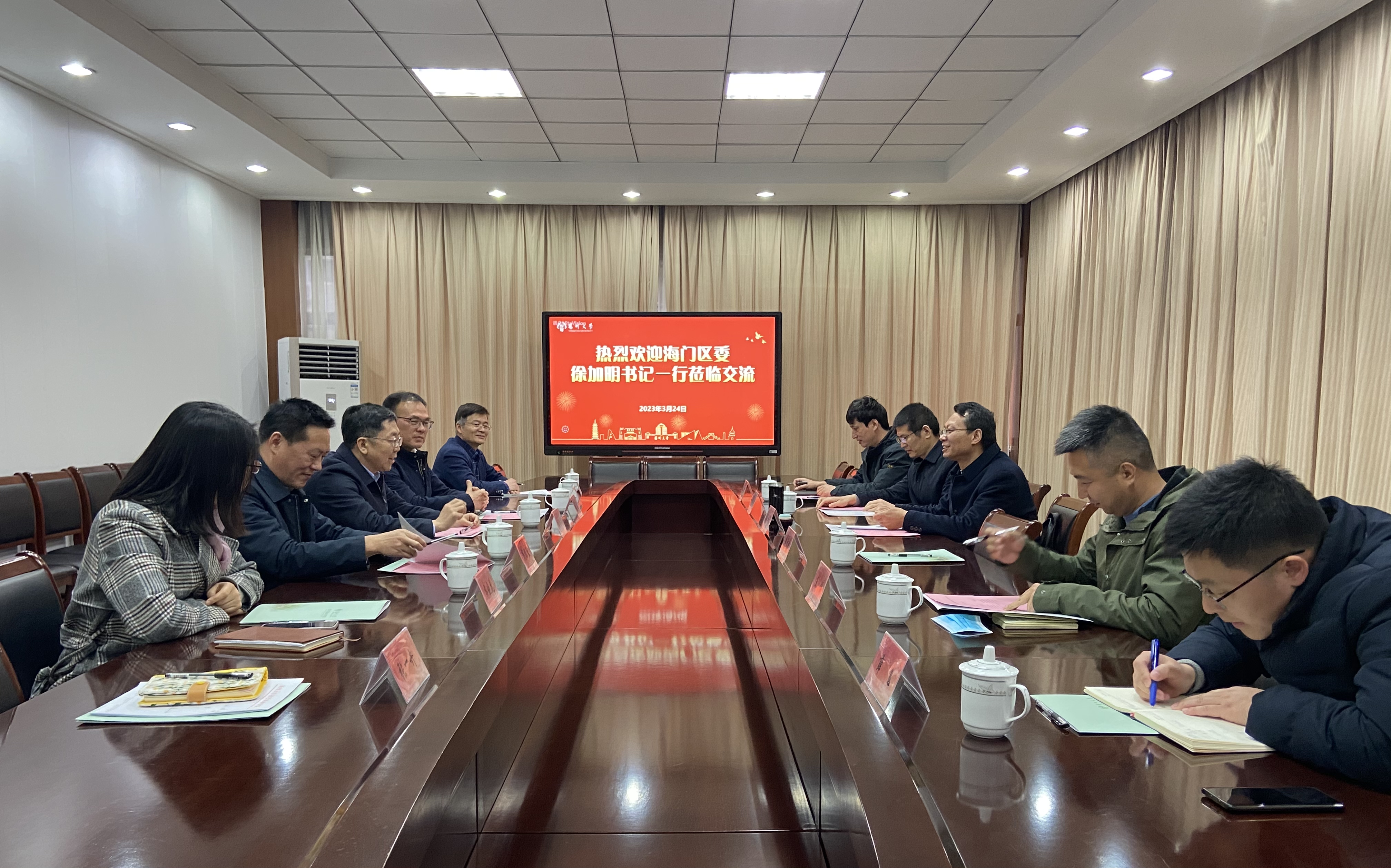 3月24日,南通市海门区委副书记徐加明一行来我院调研交流产学研合作,校党委常委、副校长蒋乃华出席并讲话,我院党委书记李卫星、副院长刘晓花、农学院党委书记周保垒等出席,参与合作交流、基地考察活动。