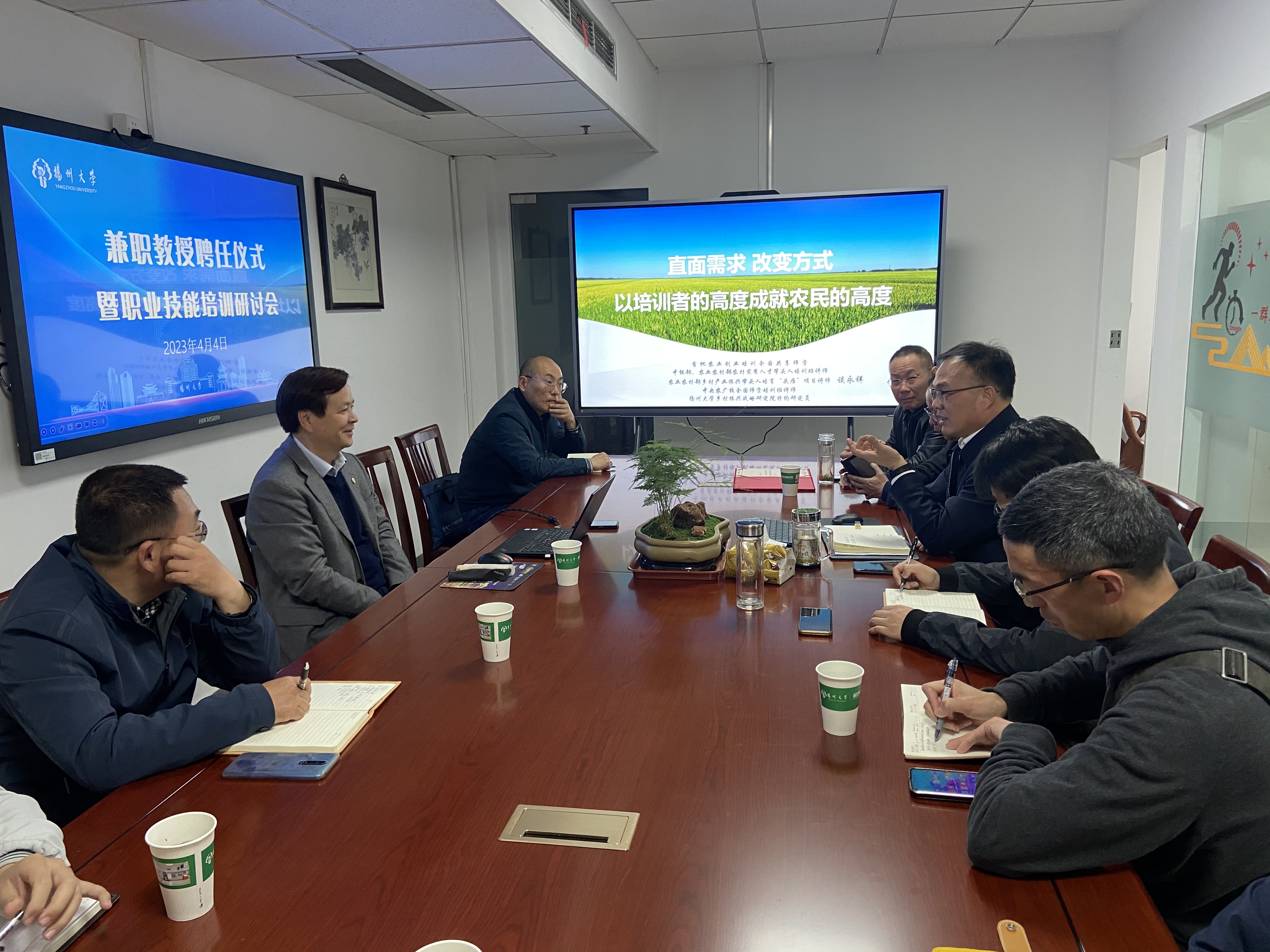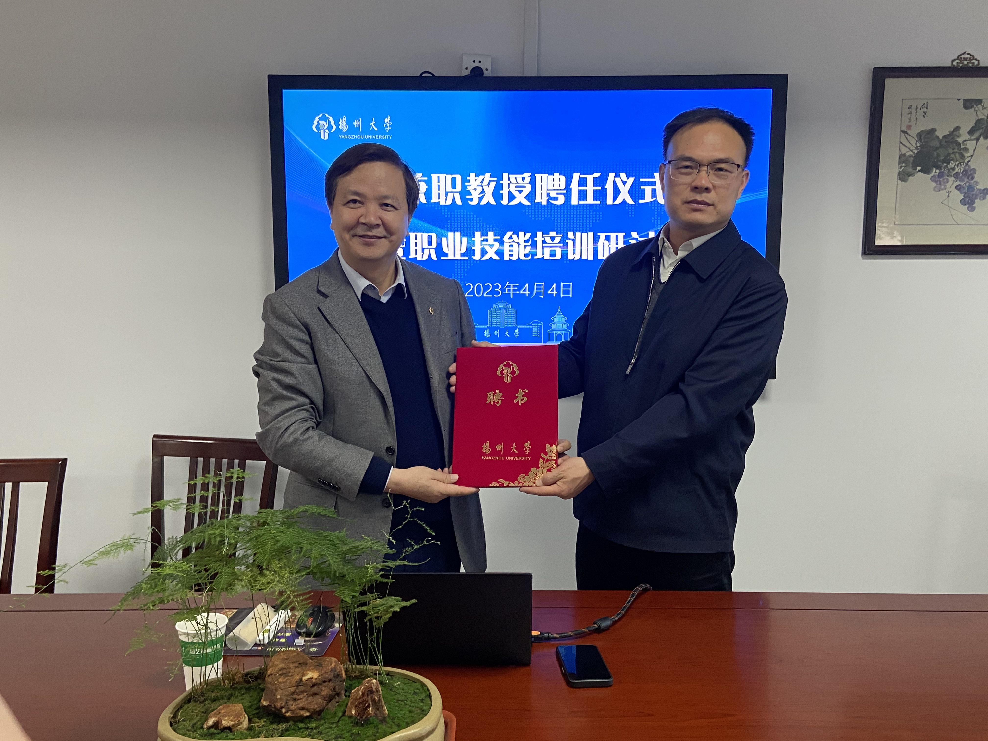 4月4日,我院举办兼职教授聘任仪式暨职业技能培训研讨会,诚聘中组部、农业农村部农村实用人才带头人培训班讲师谈永祥教授为扬州大学现代园艺产业学院兼职教授,并邀请谈永祥教授做职业技能培训专题报告。