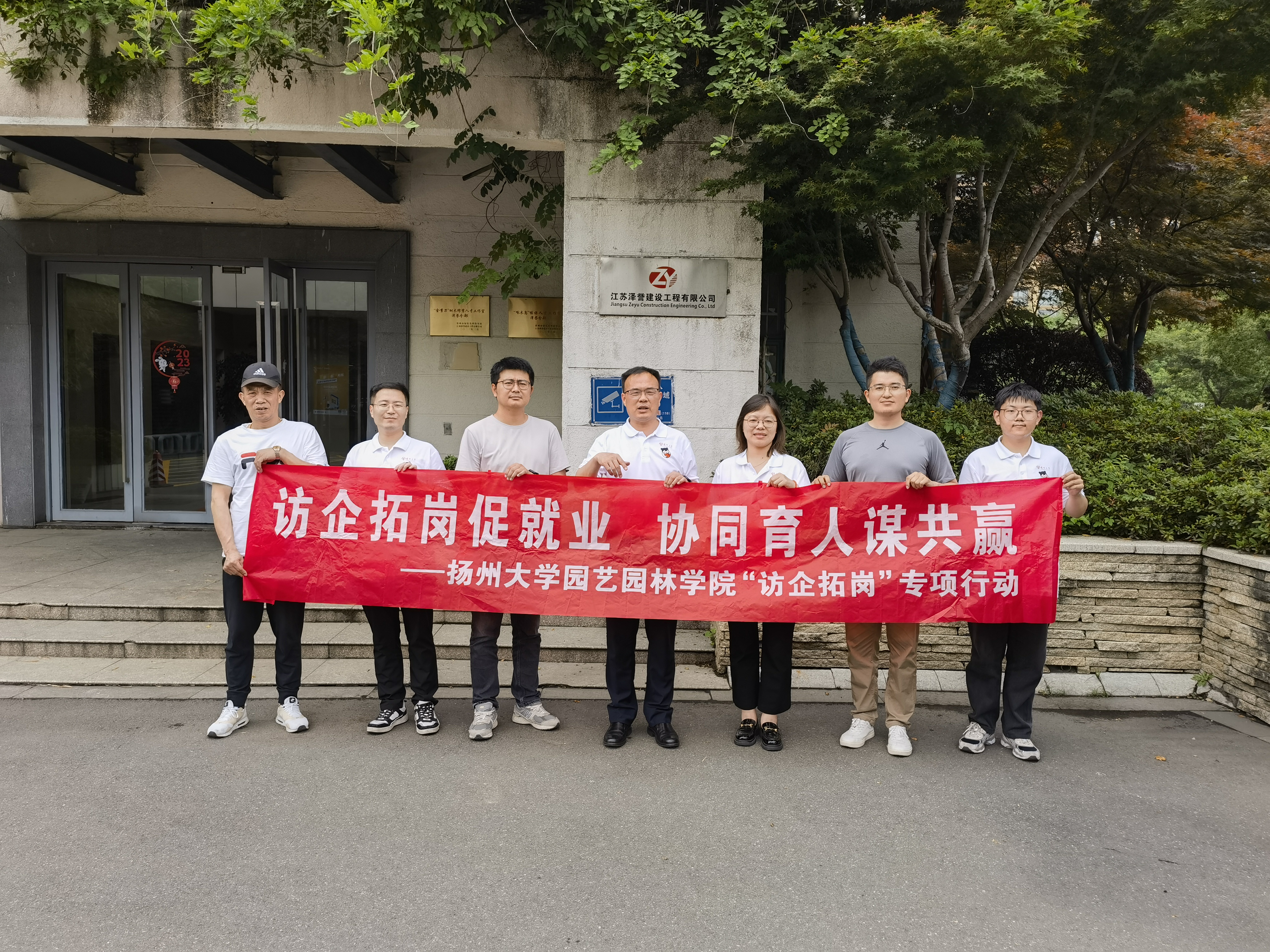 在江苏泽誉建设工程有限公司,学院拜访了两位校友副总陈冬和徐锴徕,就开拓毕业生岗位,对接企业需求,创新学生培养模式进行了深入的交流。学院党委副书记张琼,学院辅导员及毕业生代表一同进行了交流和拜访。