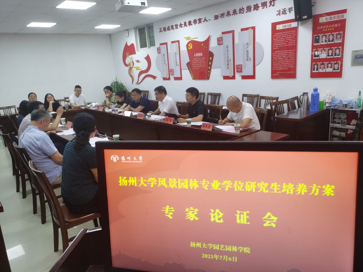 7月6日下午,我院在文汇路校区园植楼107会议室召开风景园林专业学位研究生培养方案专家论证会。南京林业大学原校长、中国风景园林教育著名专家王浩教授,国务院学位委员会风景园林硕士专业学位指导委员会委员许大为教授、田如男教授,南京林业大学徐雁南教授应邀担任论证专家。园艺园林学院院长、风景园林专硕学位点负责人冯立国教授、规划设计系和园林植物系教师及相关教学管理人员参加了论证会。论证会由冯立国院长主持。