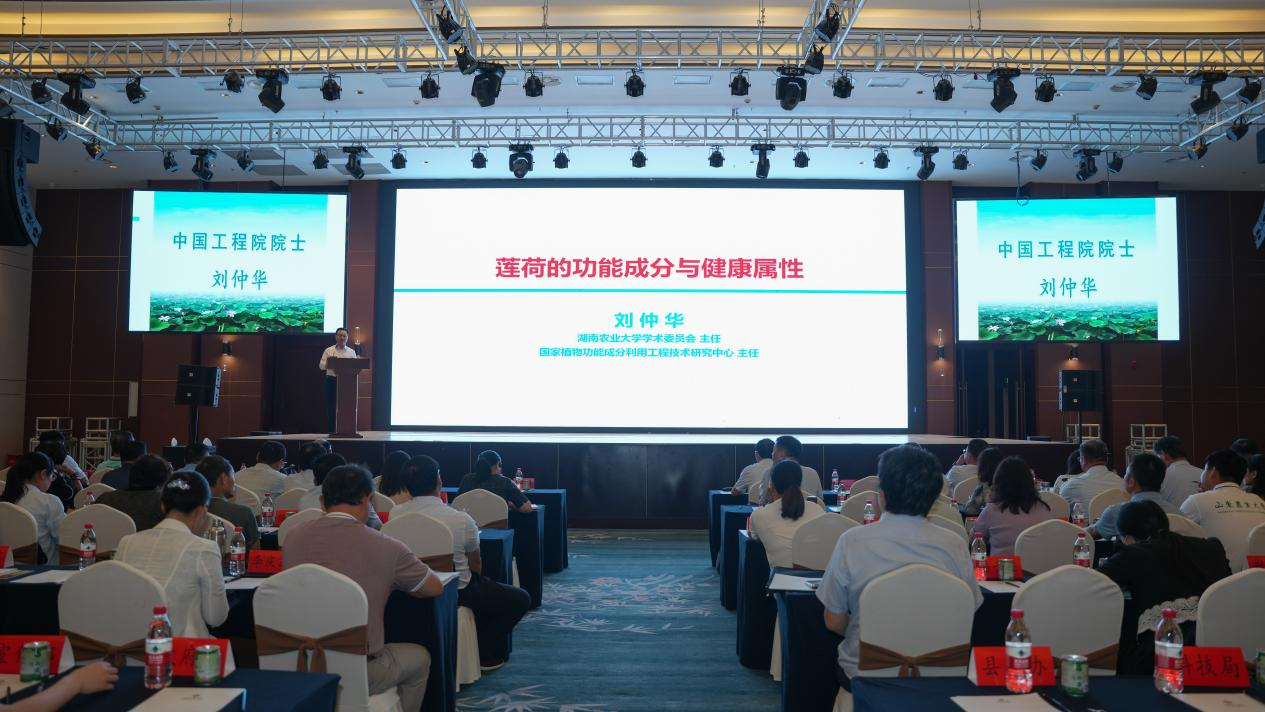 中国工程院院士刘仲华教授作“莲荷的功能成分与健康属性”大会专题报告,中国农业大学食品学院院长廖小军教授、致纯食品有限公司陈荣华董事长、扬州大学缪宏教授分别就相关主题作报告。主题论坛由国家特色蔬菜产业技术体系栽培与土肥研究室主任、我校园艺园林学院李良俊教授主持。