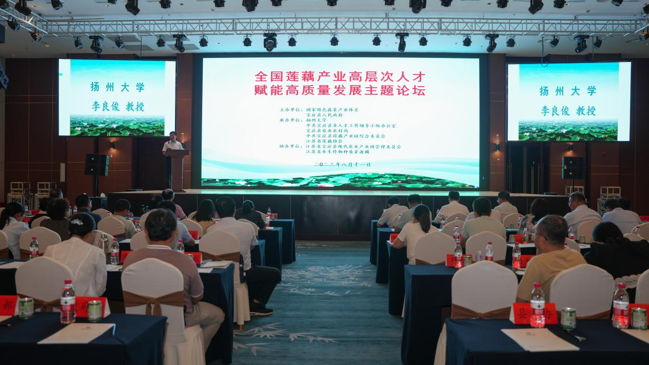 8月10-12日,由国家特色蔬菜产业技术体系主办,扬州大学承办的“全国莲藕优质轻简高效生态栽培技术现场观摩暨莲藕产业高层次人才赋能高质量发展主题论坛”在江苏宝应县成功召开。中国工程院院士、国家特色蔬菜产业技术体系首席科学家、湖南农业大学校长邹学校,中国工程院院士刘仲华,以及来自中国农业大学、浙江大学、华中农业大学等高校和中国农科院、浙江农科院、山东农科院等科研院所的120余位专家参加了会议。