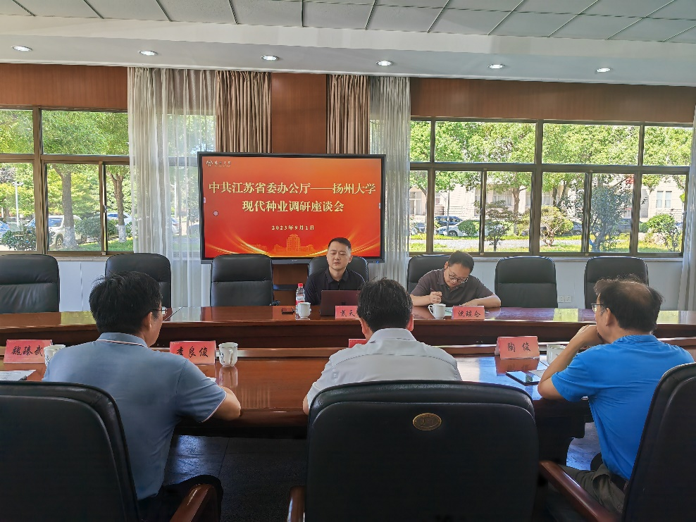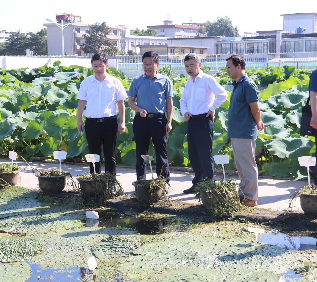 9月1日,中共江苏省委办公厅正处职督查专员赵凌云、省委督查室一级主任科员戴天舒、省农业农村厅种业处科长沈琨仑等考察我院水生蔬菜试验基地,并就水生蔬菜资源保存利用、种质创新及种业发展等内容进行座谈交流。