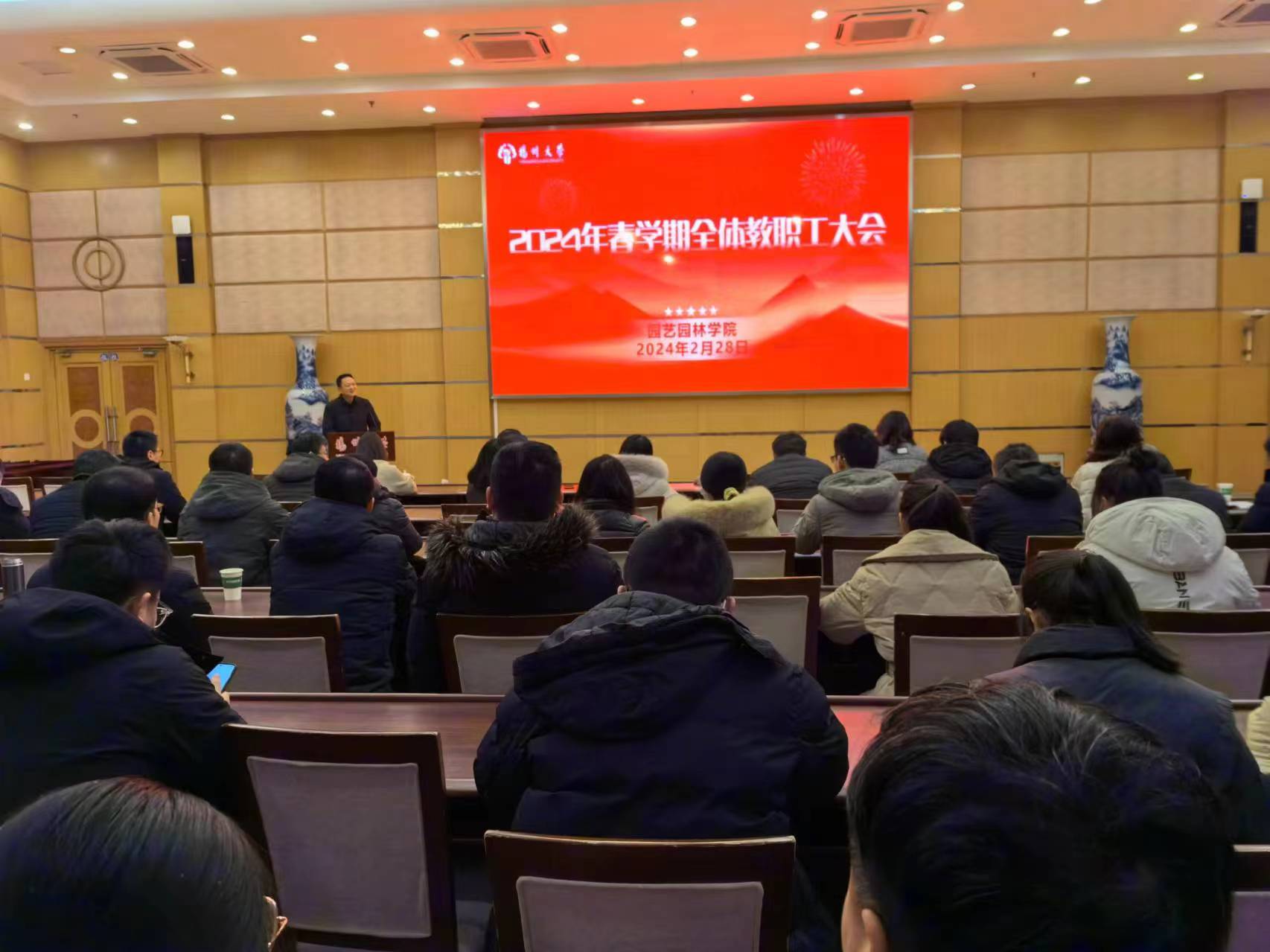 2月28日下午,学院在荷花池校主楼二楼多功能厅召开春学期全体教职工大会,会议由院党委书记景荣主持。