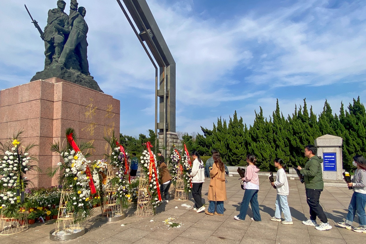 烈士纪念碑前,全体党员肃立默哀,向烈士墓敬献鲜花,表达对烈士们的深深怀念和敬意。党支部书记孟家松带领党员参观烈士陵园纪念馆,他勉励大家要继承和发扬先烈的革命精神,积极投身到学习、科研和社会实践中,为实现中华民族伟大复兴的中国梦贡献自己的力量。