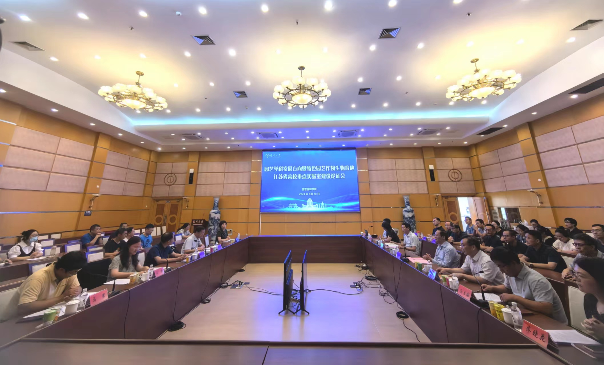 8月30日,园艺园林学院召开园艺学学科发展方向暨特色园艺作物生物育种江苏省高校重点实验室建设论证会。校长丁建宁出席会议并致辞。湖南农业大学校长、中国工程院院士邹学校,国务院学位委员会园艺学科评议组成员、国家杰青、华中农业大学教授郭文武,国家杰青、国家领军人才、南京农业大学教授吴俊,长江学者特聘教授、浙江大学教授师恺,国家杰青、中国农业大学教授马男教授等应邀担任论证专家。