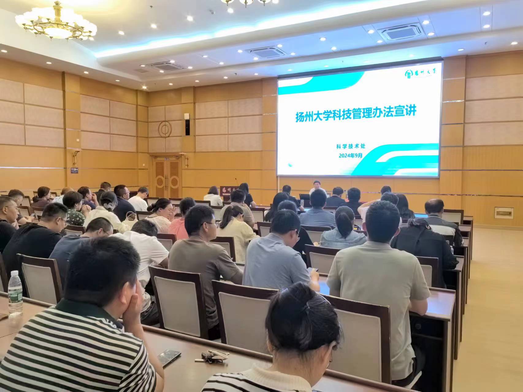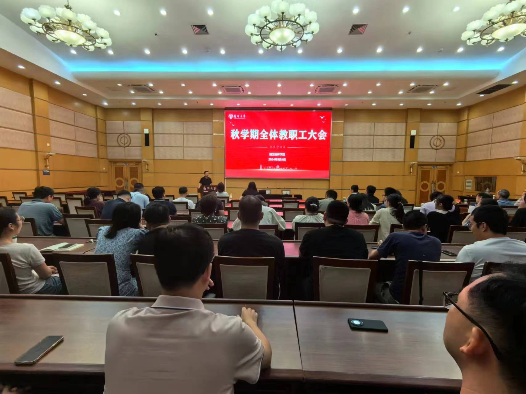 9月4日下午,学院在荷花池校区主教学楼二楼多功能厅召开秋学期教职工大会。会议邀请校科学技术处副处长赵海涛作科技管理办法专题宣讲。会议由院党委书记景荣主持,全院教职工参会。
