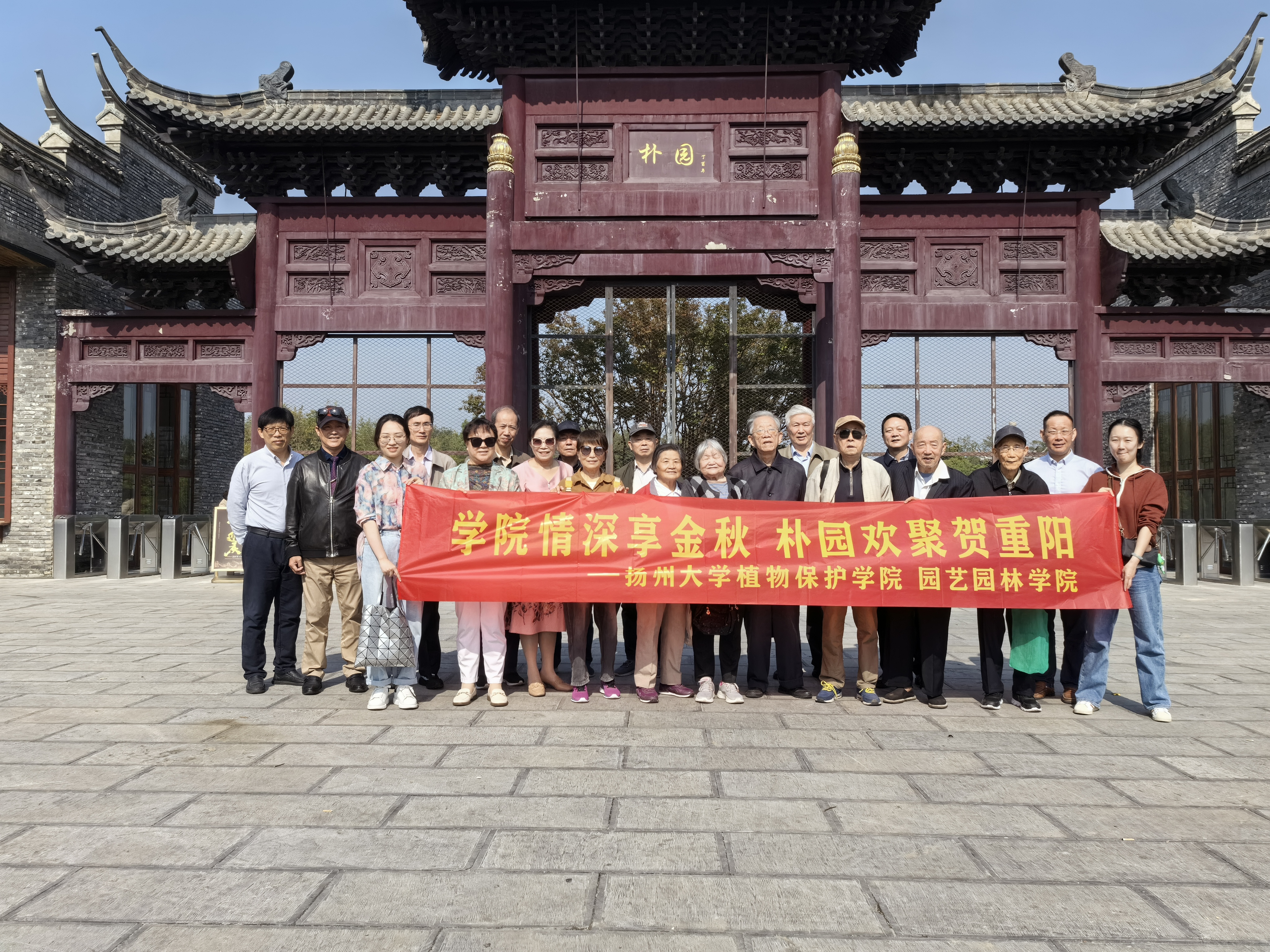 10月11日,我院与植物保护学院共邀离退休老同志前往江都朴园开展“学院情深享金秋,朴园欢聚贺重阳”重阳节敬老活动。园艺园林学院党委书记景荣,植物保护学院党委书记魏训鹏,16位离退休教师及院办负责同志参加活动。