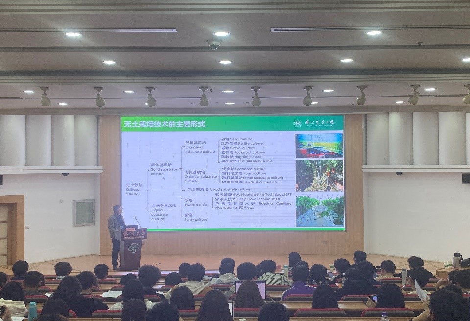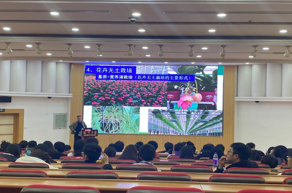 我院于11月6日下午邀请南京农业大学郭世荣教授在荷花池逸夫报告厅进行了《我国无土栽培发展概况及发展趋势分析》专题报告。齐晓花副院长主持活动,青年教师和全体24级园艺、设施农业科学与工程专业学生参加了活动。