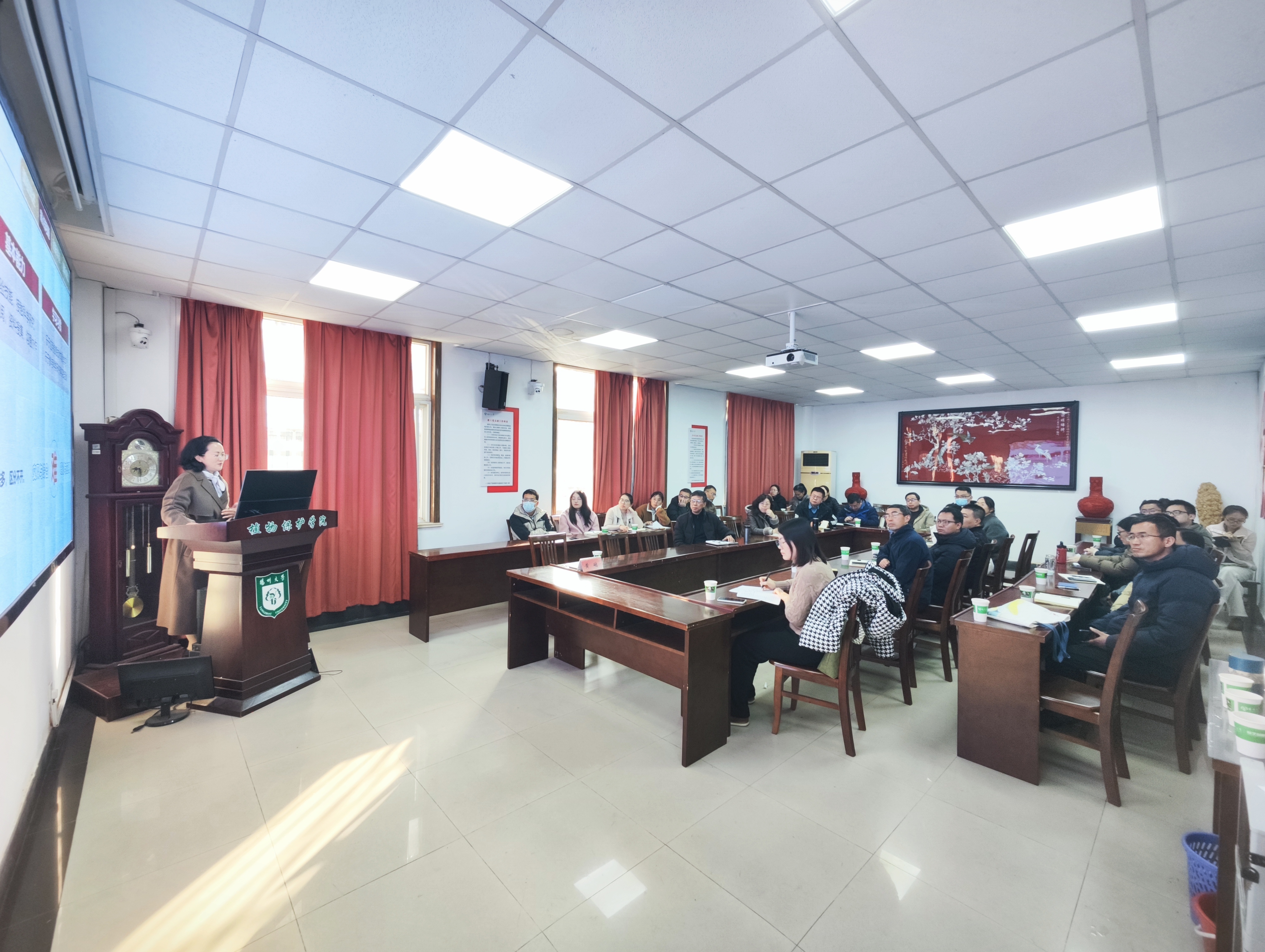 2025年12月17日,扬州大学园艺园林学院在文汇路校区10号楼107教室成功举办本科教学节系列活动之“名师大讲堂”。本次活动特邀浙江大学农业与生物技术学院博士生导师、蔬菜研究所副所长黄鹂教授,作题为“《园艺植物育种学》课程的多维度教学创新与实践”专题报告。黄鹂教授从课程概述、痛点问题、创新举措、创新成效四个方面为大家进行了详细讲解。
