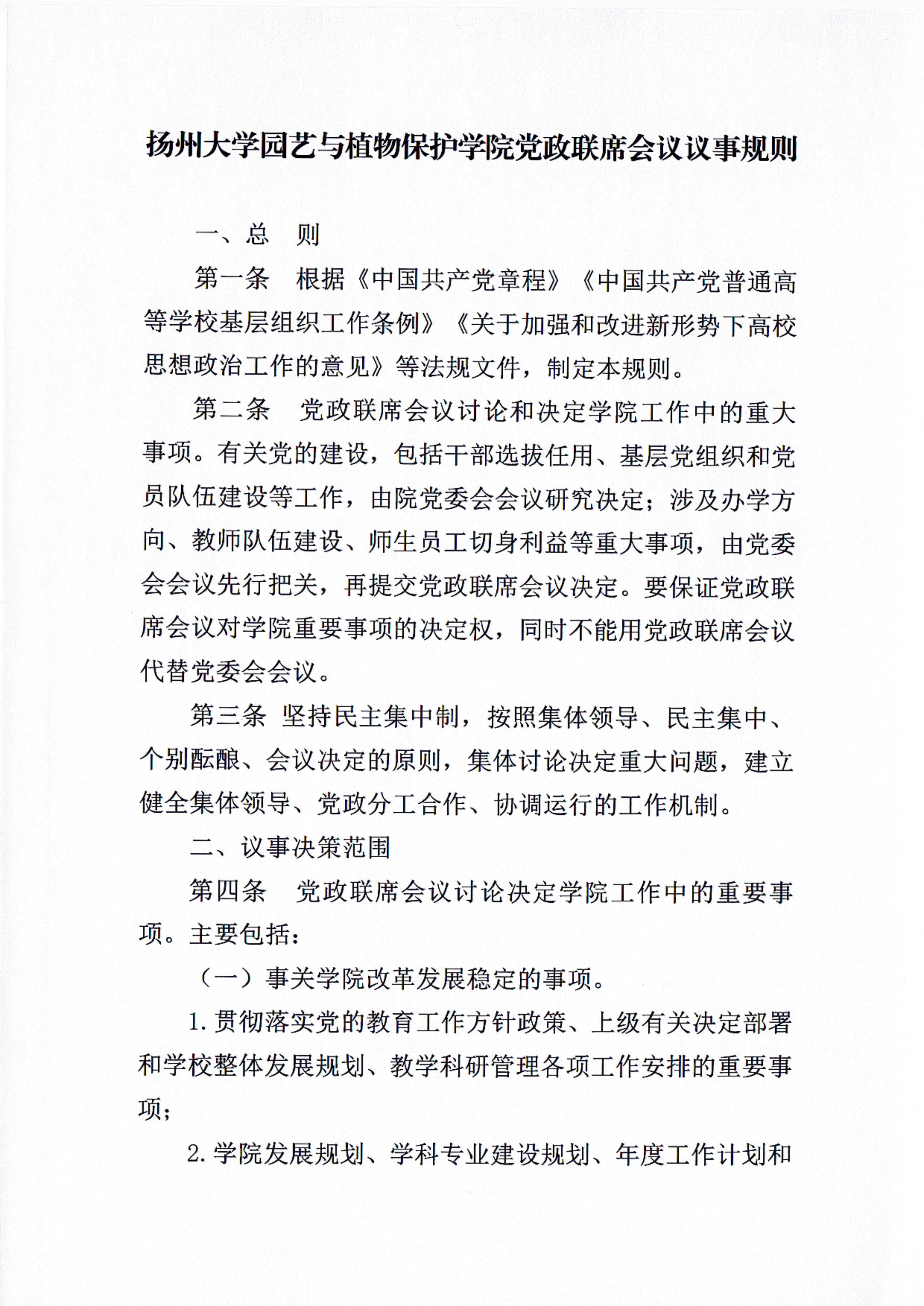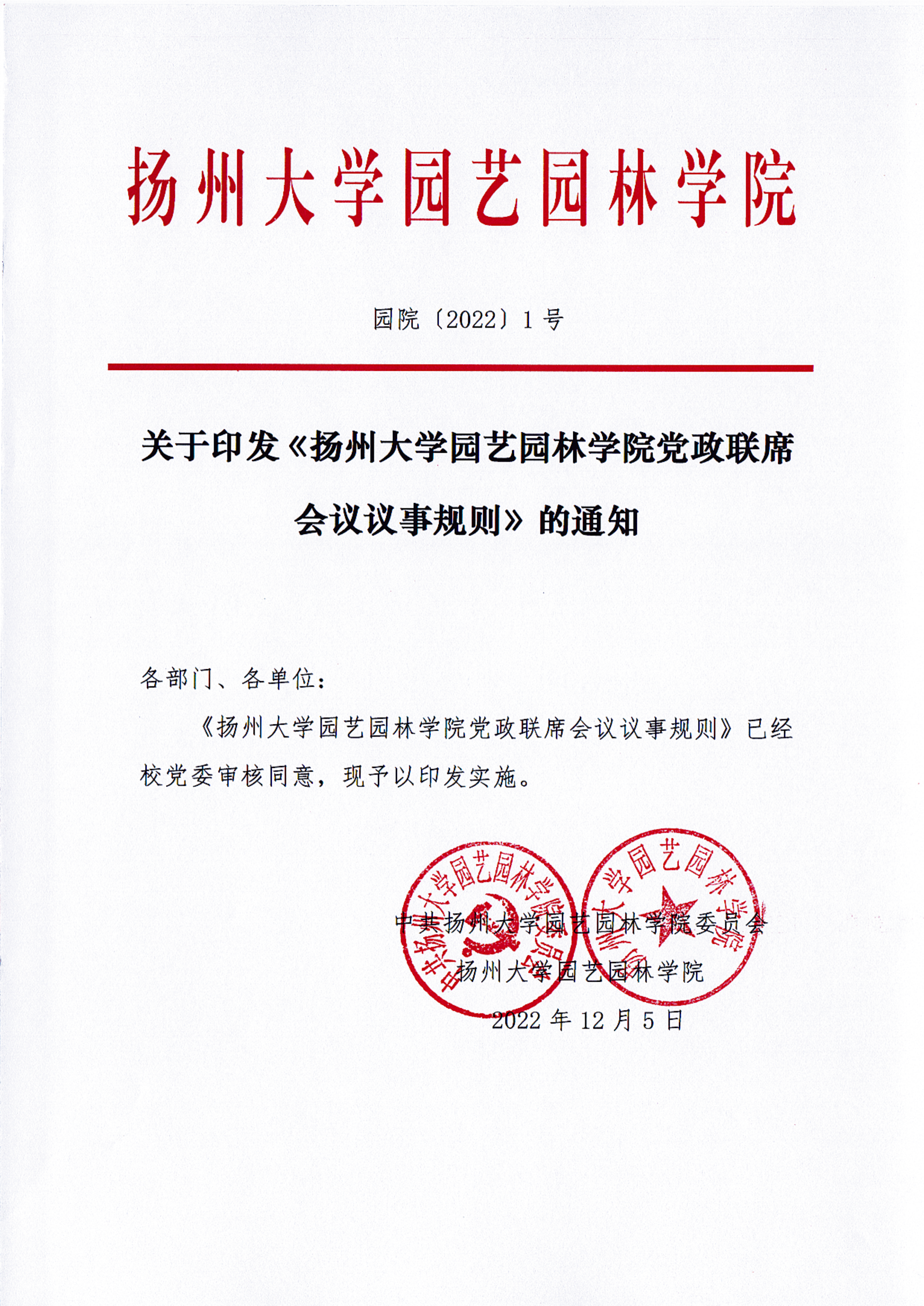 园院〔2022〕1号关于印发《扬州大学园艺园林学院党政联席会议议事规则》的通知