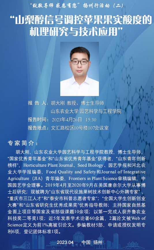 报告题目:“山梨醇信号调控苹果果实酸度的机理研究与技术应用”