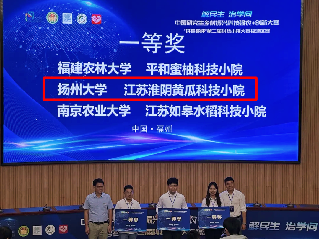 11月5日,由中国学位与研究教育学会、中国科协青少年科技中心联合主办,教育部学位管理与研究生教育司、全国农业专业学位研究生教育指导委员会精心指导,福建农林大学承办的中国研究生乡村振兴科技强农+创新大赛“拼多多杯"第二届科技小院大赛圆满落幕。我院陈学好老师、齐晓花老师指导的江苏淮阴黄瓜科技小院“瓜瓞绵绵 筑梦乡村”项目团队荣获福建区赛一等奖,并顺利晋级国赛!